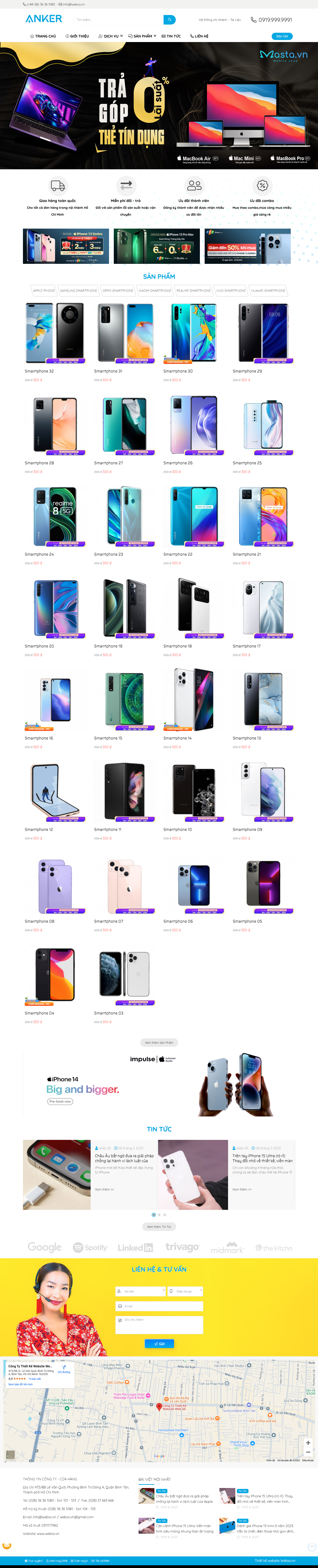 Liên hệ Cho phép khách hàng gửi thông tin, câu hỏi, yêu cầu báo giá hoặc tư vấn, đồng thời cung cấp địa chỉ, số điện thoại, email. - Form liên hệ tùy chỉnh.
