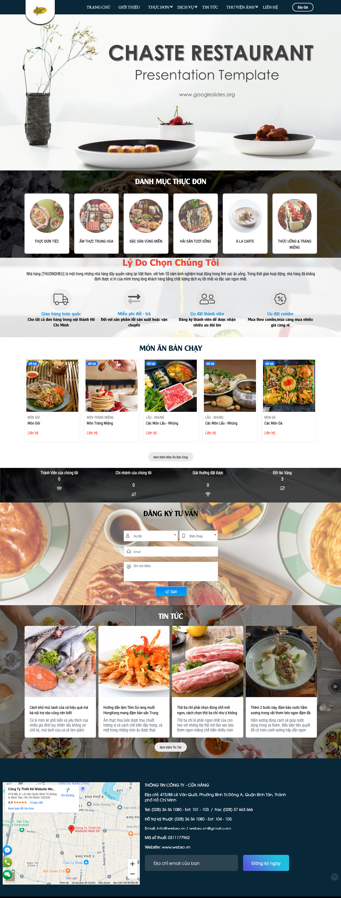 - Thêm bản đồ Google Maps (nếu cần).